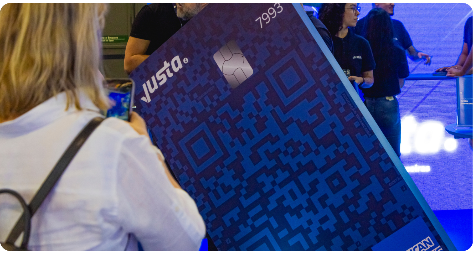 Para divulgar essa conquista, tínhamos um enorme cartão em exposição, no qual os visitantes podiam admirar o card design inovador e até tirar fotos.